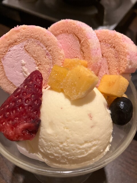 お酒もリーズナブルで、名前は忘れましたがラムや獺祭をいただきました。デザートのパフェは、ロールケーキもアイスで、ボリュームたっぷり。鍋で熱くなった身体を程よく冷ましてくれました。