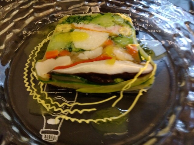 ・帆立貝と蟹と野菜のテリーヌ モザイク仕立て