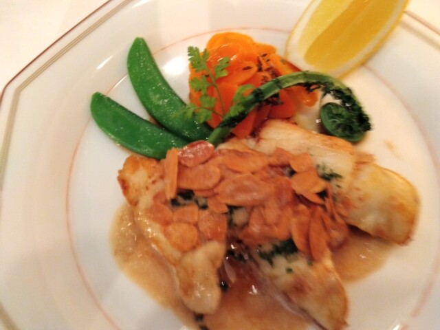 お料理は前菜、メイン(肉・魚選択)、デザート(選択)、コーヒー(選択)のランチで前菜、鱸のポアレ、デザートはなるほど王道フレンチであり大変美味しくいただけました。パンも香ばしく美味しくいただけました。