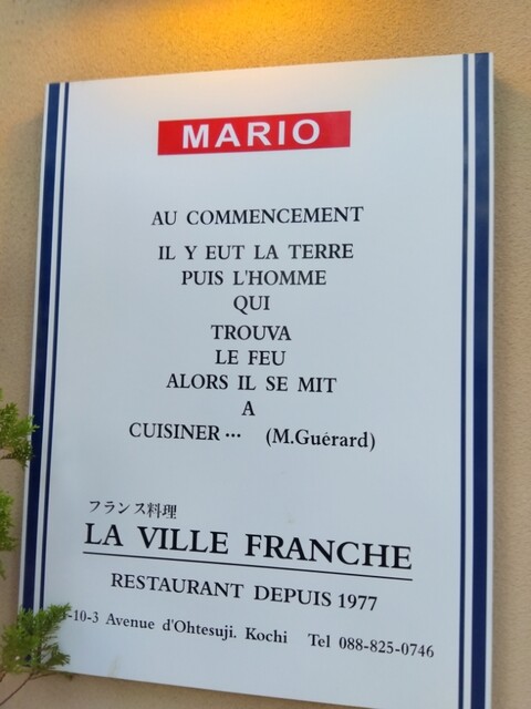 高知で美味しいフレンチ『ラ・ヴィルフランシュ』