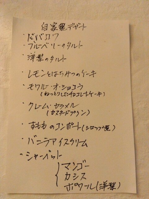 こんどお伺いした時は、肉料理もあるフルコースディナーをいただきたいと思いました。