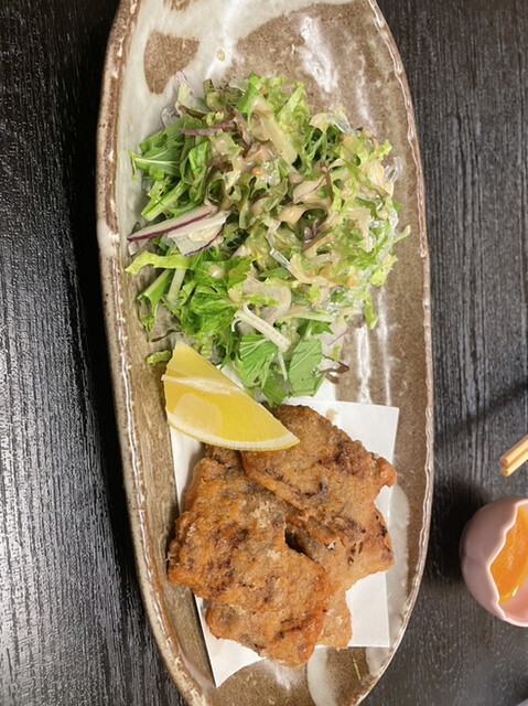 そして、竜田揚げ優しい塩ベースの味付けを、からりと、揚げており、噛むと鯨の弾力ある歯応えと、肉の旨みが口いっぱいに広がります。美味(o^^o)