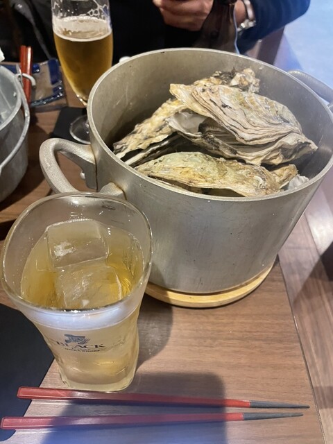 まずは牡蠣、生牡蠣、バケツ入りムシガキはどちらもプルプル、甘みがあって美味しい。