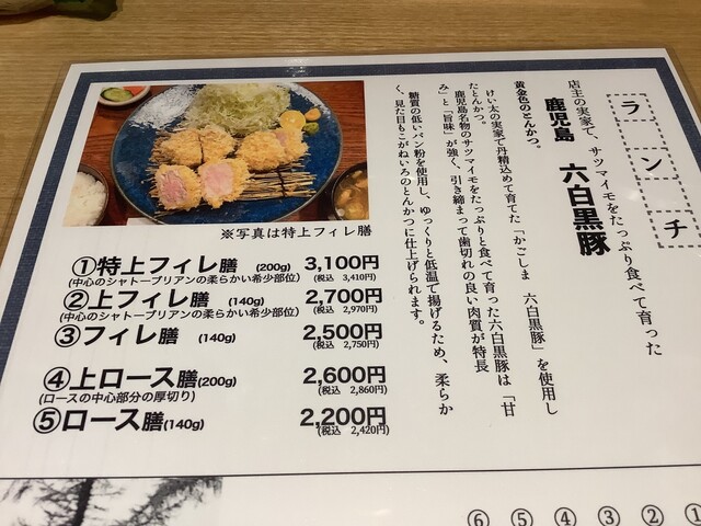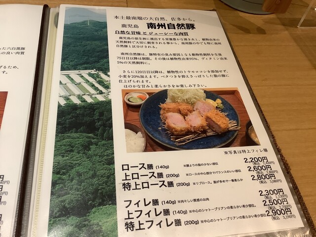 ディナー用のメニューは同じ鹿児島の南州自然豚がありました。