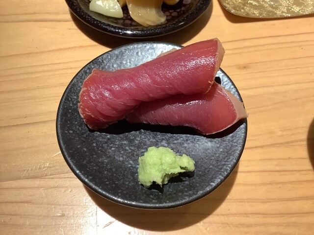 ワサビと一緒に食べるとネットリした赤身の旨味がたまりません。