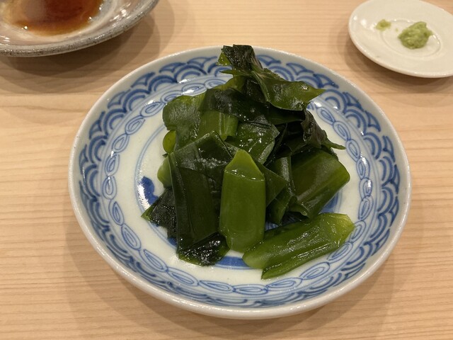 ワカメ:茹でたての新物のワカメで優しい塩味と旨みがいいですね。