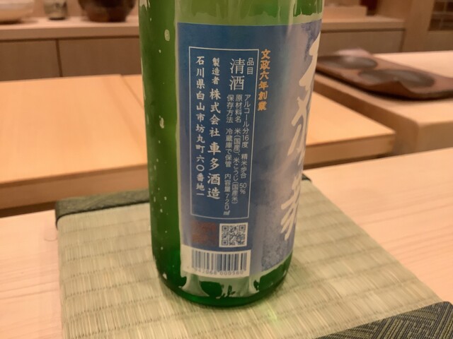 次の日本酒はお客さんが持ち込んだ日本酒をいただきました。