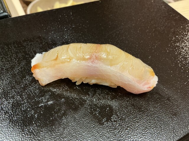 クロムツ:神奈川の長谷川さんのクロムツでこちらも皮目を炭で炙ります。