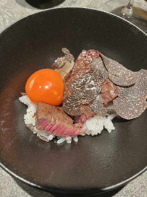 〆のトリュフ香る炊き込みご飯は、香りが立ちすぎず、最後まで食べ疲れしないバランス感覚が光る。