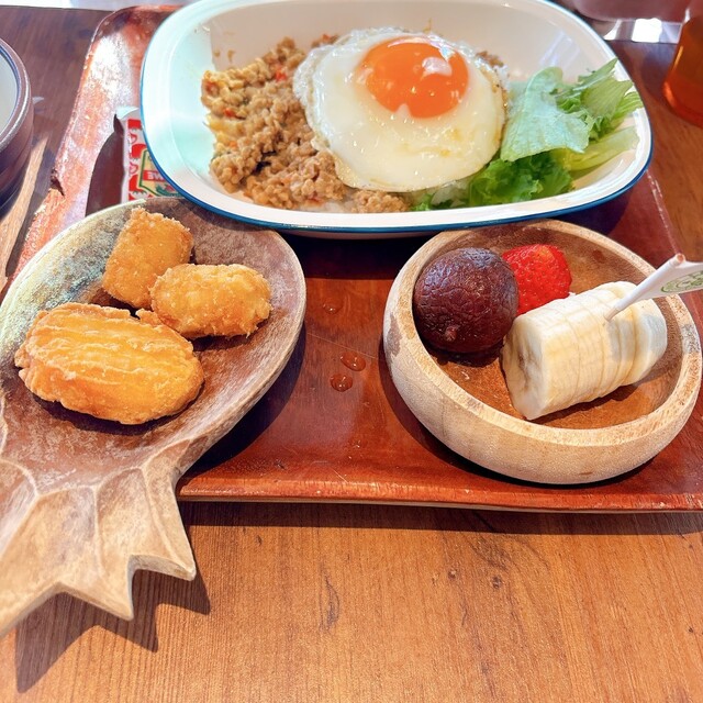 具だくさんのスリランカカレーと絶品ガーリックトースト!