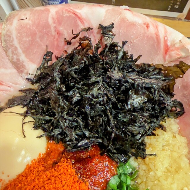 正確には特製クリア豚骨らぁ麺➕野菜マシマシ➕味付玉子➕青ネギマシマシ➕ニンニクマシマシ➕辛味10倍️です