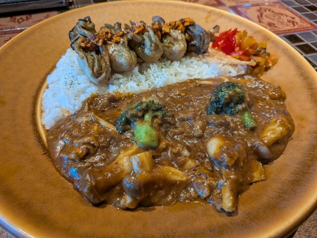 チーズカレーは見た目はインパクトありますが、牡蠣やシーフードが旨味が感じられて美味しいですね。今回もあっと言う間にに完食してました。