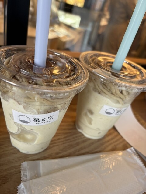 上澄の栗と下の層のスムージーをしっかり混ぜて