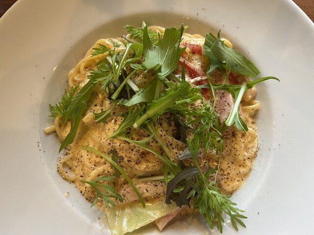 妻のゴルゴンゾーラと私のカルボナーラをシェアしましたが、私はカルボナーラが好きです