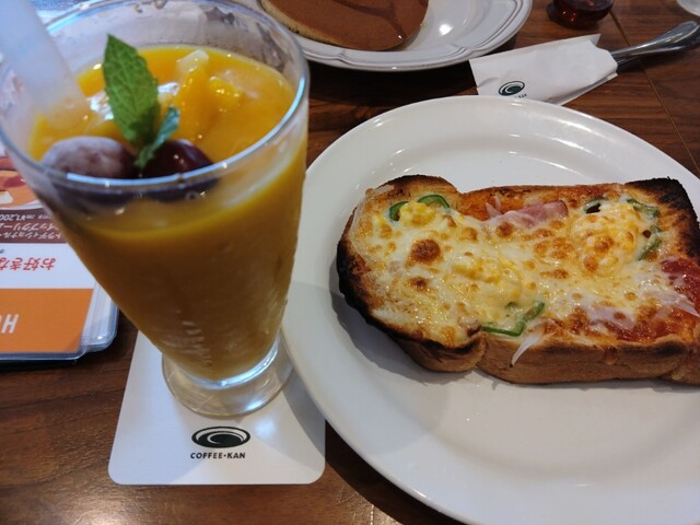 きょうはホットココア(550円)とえび天サンド(990円)にしました。