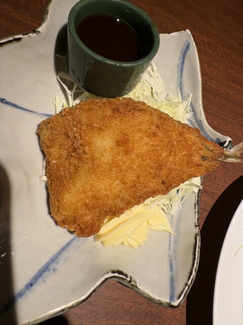 牡蠣フライ、しらこも注文して別のテーブルで大きなアジフライが提供されているのを見て、それも注文。