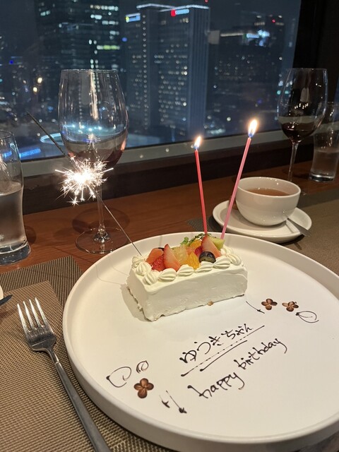 記念日コースがあり、そこには誕生日ケーキとメッセージをつけてくれるサービスがあったので、ありがたく使わせてもらいました。