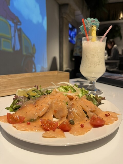 ロングビールやオニオンリング、サーモンカルパッチョはどれも美味しかったです。