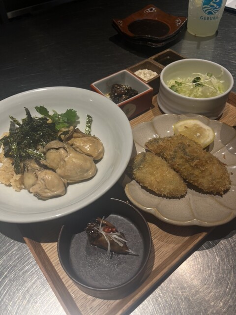 焼き牡蠣、サラダ、牡蠣フライ、牡蠣めし、牡蠣の佃煮、牡蠣のオイル漬け、牡蠣の味噌汁が全て1つになった、夢が詰まった定食。期待に違わず、牡蠣にはぷりっぷりの身が詰まっています。お世辞抜きでどの一品も最高に美味しいです。この値段でも安いと思えてしまうほどのクオリティ。+¥500して特選定食にするのもいいと思います。