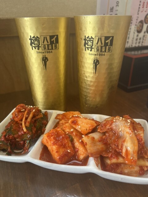 キムチ盛り合わせは山芋、きゅうり、白菜とあり山芋が一番好み!甘さもあり何個も食べたくなる!