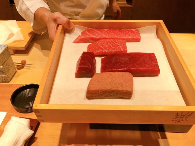 握りのシラカワ、マグロ4種。やっぱりマグロは美味しいなぁ。