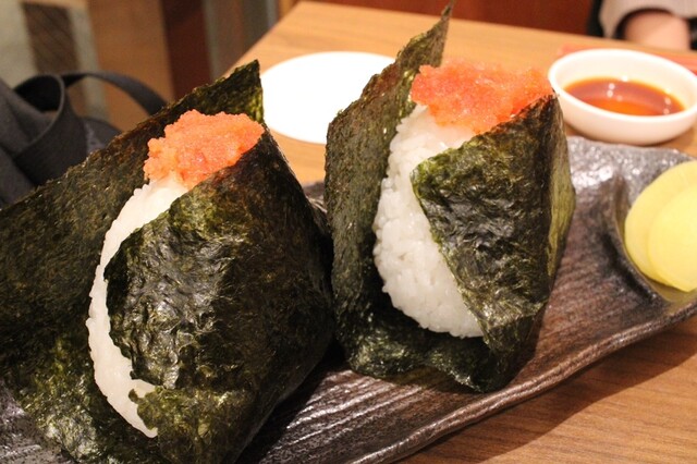 次にいただいた「明太子おにぎり」は、ピリッとした辛みがアクセントになり、ご飯の甘みとよく合います。おにぎりのサイズ感も絶妙で、おつまみ感覚で楽しめる一品です。