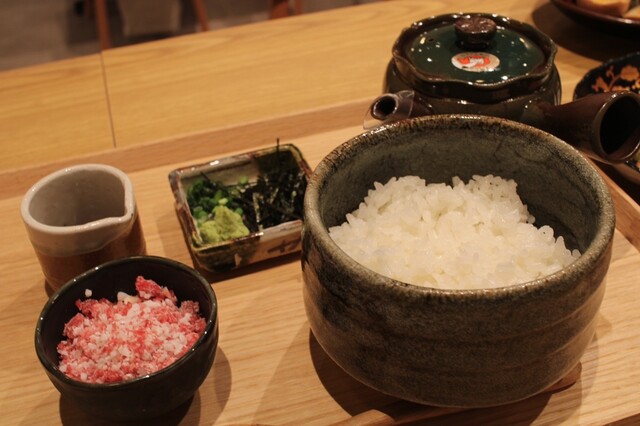 牛とろをたっぷりとまぶしたご飯に、熱々の出汁をかけていただきます。やさしく染み渡る味わいで、食事の締めにぴったりでした。