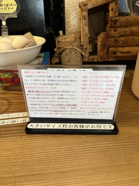 メニューは一つ、じゃじゃ麺のみで、麺の量だけ注文します。