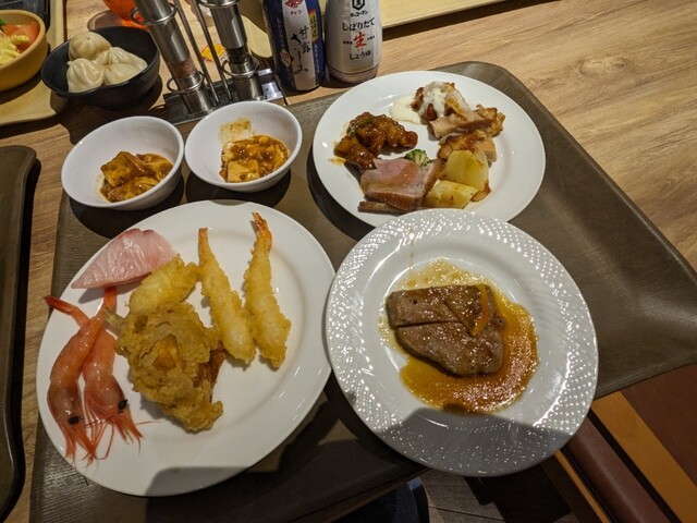 朝限定メニューとして、サラダが豊富だったり、オムレツのライブキッチンや、お刺身、郷土料理などもあり、夜に比べて優しい内容で豊富な料理がありました。