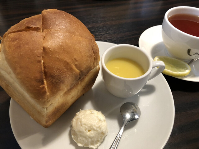 紅茶(430円)に大きめのパンが付いてきます。ビジュアルも丸くて可愛らしい
