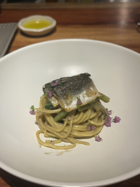 お勧めのトスカーナ赤ワインも初めて。聞かなかったら、ブルゴーニュかと思ってしまうエレガントさ。お陰で、お肉にもお魚にもマッチ。近々また、伺いたいです。ご馳走様でした。