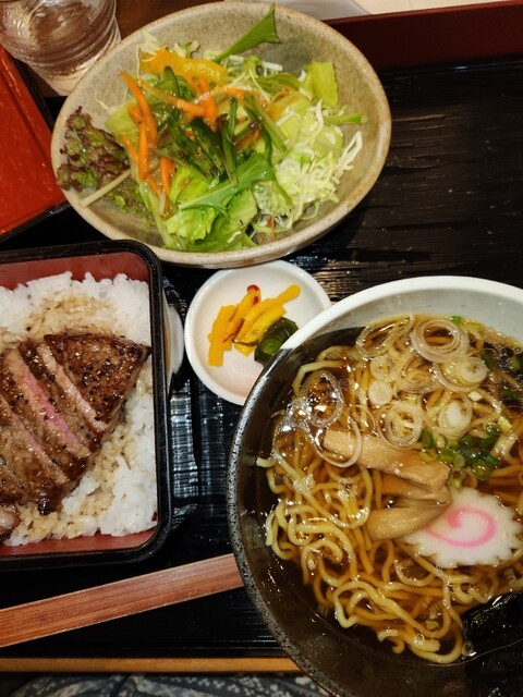 ※ ステーキ(軟らかくてとても美味しい)もステーキソース(ニンニクがほどよくマッチ)も◎ご飯が進みます、また小ラーメンが洋食屋さんのラーメンとは思えないほど◎(セットメニューとしても皆さん注文されていました)