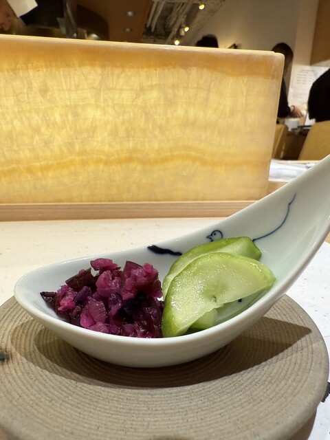 酢の物や冷製茶碗蒸しなど、夏らしい爽やかな一皿も挟みつつ、炙りサーモンとイクラ、炙りホタテの焦がし醤油など香ばしい系のネタも充実。