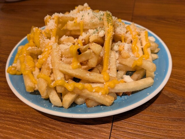 2種のチーズをかけたフライドポテトも飲み物を選ばないテッパンのご馳走メニューだと改めて感じる。