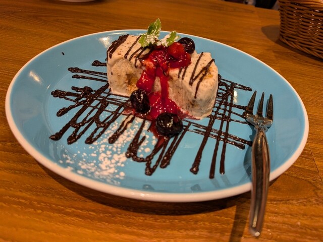とろ~り4種のチーズクリームの名物「濃厚クアトロシカゴピザ」は、映えまくりでお通しのフォカッチャおかわりしながら楽しく美味しく満足できる。ボロネーゼとブルーチーズで味に変化が出て最後まで美味しい。