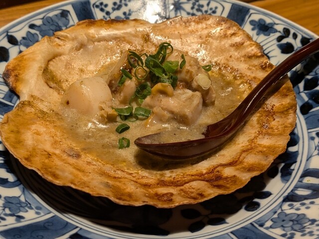 炉端焼きは目の前の炭火で焼き上げてくれてライブ感が最高!帆立のかに味噌バターは、帆立とかに味噌を合わせるだけで驚きなのに、強力な素材同士をバターで繋ぎ、旨味とコクのバランスを取っていて丁寧な仕事が光る逸品でした。どんこ椎茸も肉厚旨味溢れるジューシーさ。A5ランク牛肉もじっくり低温で火入れするから、丁度良い美しいピンク色で見てうっとり、歯切れ良く、噛むほどに旨味がじゅわ~と溢れ出し…美味い!