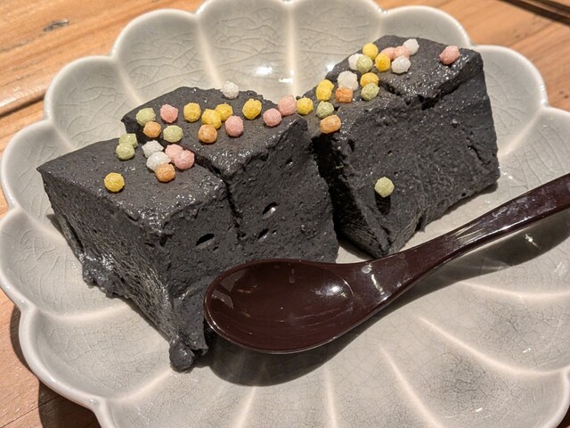 里芋のからあげは、食感軽快にほくほく出汁がじゅわっと美味い。胡麻豆腐はしっかり胡麻風味で濃厚、飲み込んでからもしばらくその風味で日本酒が楽しめちゃう。余韻って大切な要素と実感!