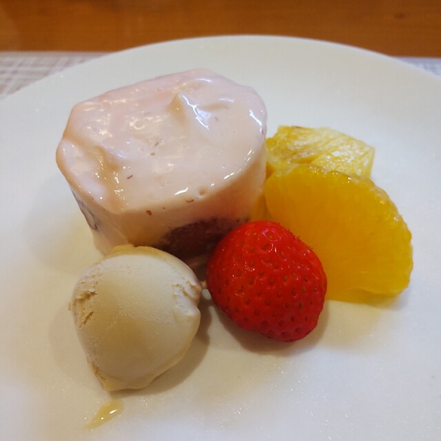 鮮やかな赤紫色で見て楽しめて、ビーツ独特のやさしい甘さとミルクでやさしい味わいのスープでした。
