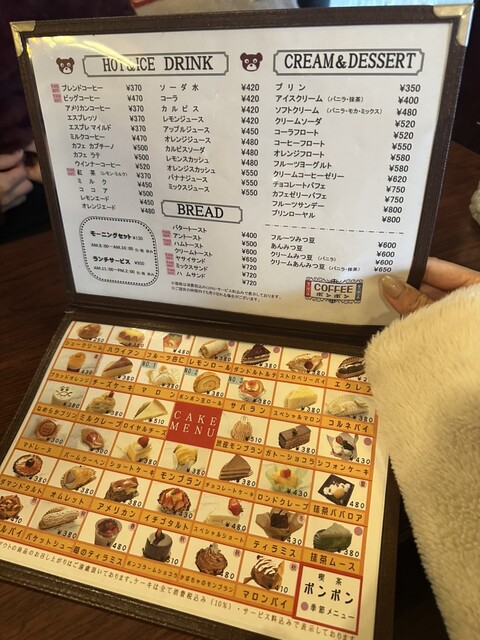 ドリンクはもちろん、パフェや軽食、あんみつ、40種のケーキとメニューの種類が豊富です!しかもケーキは380円~でかなりリーズナブル!♡