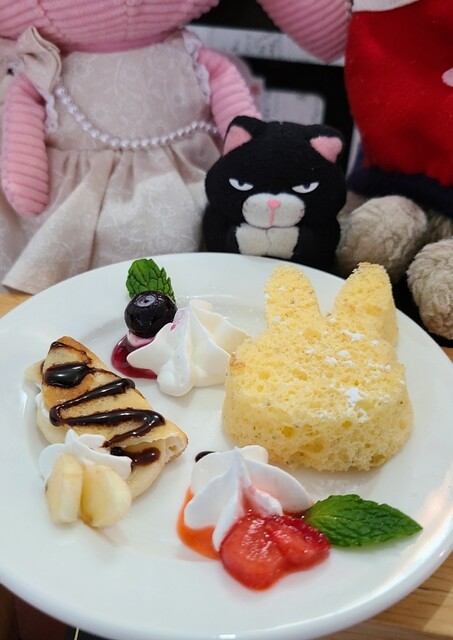 今日も来ちゃいました「喫茶黒うさぎ」さん、2時オープンなので昼食を外して「シフォンケーキセット」、「グラスパフェ」と「ルイボスティー」を頂きました。「生クリームとシリアルベースにてんこ盛りのフルーツ」最高!です。連れの「ひさし」くんも「ミニグラスパフェ」をご馳走になりました。