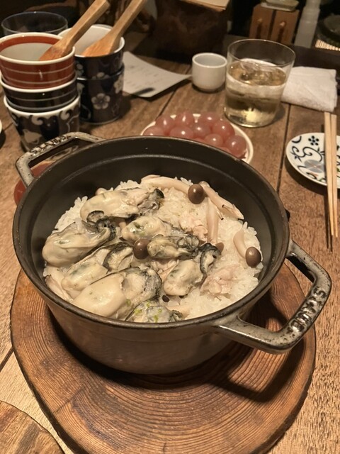 牡蠣ごはんで卵かけご飯なんて考えた事ない贅沢品!ご飯を小ぶりの茶碗によそってちょうちん卵をプチっと潰して混ぜると涎が…笑