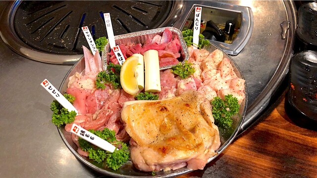 麻辣・ガーリック・青唐辛子・岩塩 4つの味わい楽しめて、小腹が空いてる程度だったから鶏肉のセット¥2980、炭焼きは香ばしくて美味しかった。ナンコツチヂミもコリコリ。チキンステーキを上手く切れずに居たら、お兄さんが手助けしてくれて、ありがと。