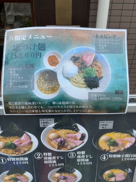 海鮮をメインに使ったラーメン屋。期間限定品などもあり多彩なメニューが食べられる。特に昆布水つけ麺が最高。