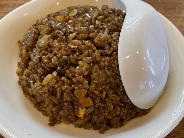 大きめに刻まれた焼豚にもしっかりと味が染み込んでいてたまらなく美味い。機会がらあったら、“ミニ”ではなく“普通盛り”サイズの黒チャーハンを注文したいと強く思った。