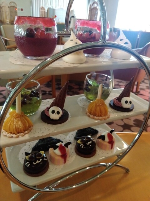 閉館になる前にと、アフタヌーンティーに行きました。9,10月はハロウィン最初にお食事系、最後はスイーツですが、ボリュームがすごいです。生サーモンのバーガーとパプリカのスープがとても美味しかったです。見た目もボリュームも