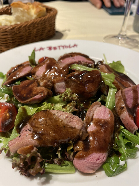目玉焼きは、来た時にいい意味で予想を裏切られ、一瞬グラタン?かな?と。中にトマトソースが敷いてあって卵とチーズ、トリュフオイルかな?微かな香りがしました。美味しい
