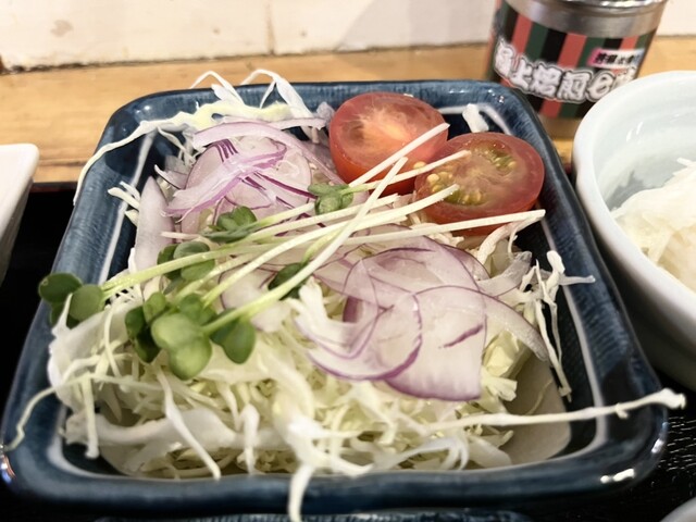 サラダ、味噌汁、卵、ガリ、刻みトロロ付きでした。