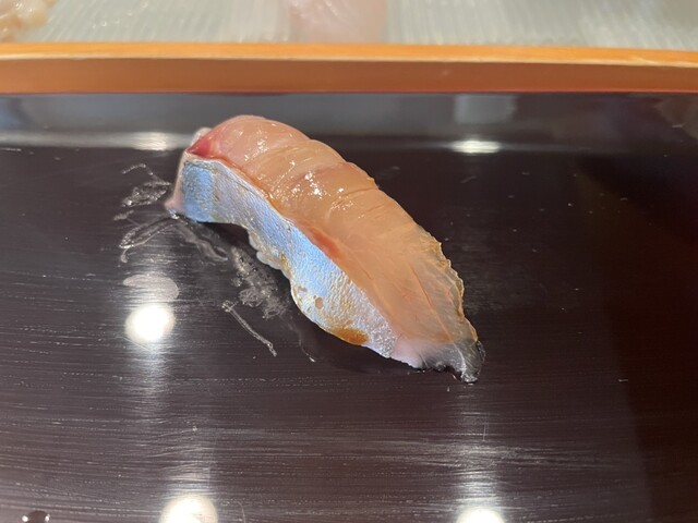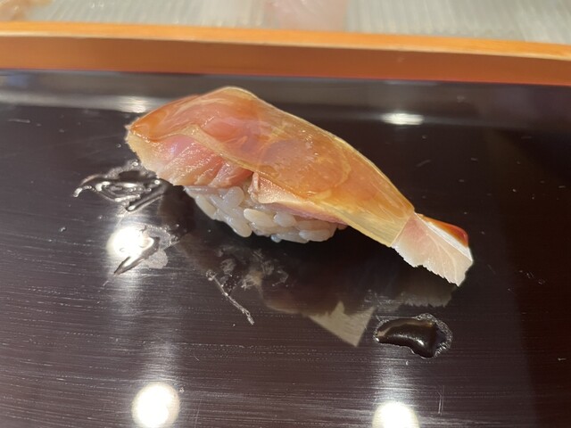 ▪️クルクルではないお寿司に関してあまり知識も食経験もない上、一流の職人さんに握っていただく江戸前の本格的な寿司を食べたことがない「寿司ど素人」なのですが、こちらで今日いただいたお寿司のウマさ、レベルの高さにはびっくりしました。魚が新鮮なのは大前提で、それぞれの魚に施されている仕事が丁寧で鮮やか。赤酢のシャリとネタとのコンビネーションがいずれも絶妙でした・・・肝を載せたカワハギの握りをいただいた際には、あまりのウマさに反射的に「スゴイ」と言葉を漏らしてしまい、大将に笑われてしまいたした。