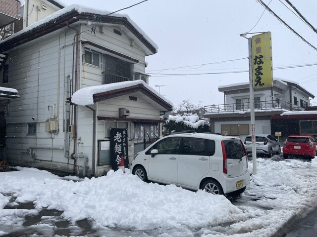 ■JR東日本「大人の休日倶楽部パス」を使って東北食べ歩きを敢行。食べ歩きのメインイベントとして「喜多方ラーメンの名店巡り」を設定していたのですが、数日前からの寒波&雪の影響で、郡山から会津若松・喜多方方面に向かうJRの列車が大遅延。当初、午前10時過ぎに喜多方駅に到着する予定が正午前になってようやく到着。この段階でかなり疲れていた上、滞在時間から逆算すると喜多方でお邪魔できるラーメン店は2店ということになり、食べログ「食堂」百名店でもあるこちらのお店(なまえ食堂さん)と全国に展開している坂内の本店である坂内食堂さんにお邪魔することにしました。慣れない雪道を駅から10分強歩き、なまえ食堂さんに到着。金曜日の正午を少し過ぎたくらいの時間でしたが、外待ちのお客さんは1名のみでした。15分ほど待って入店。