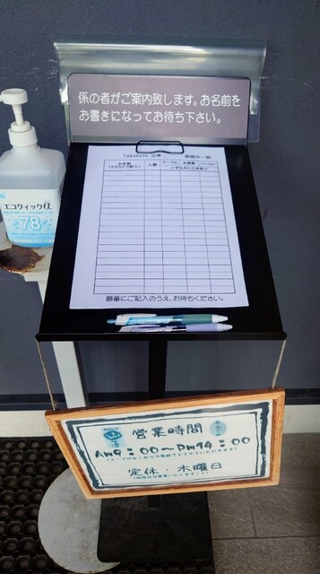 開店は9時。5月4日(土)4連休の2日目、米沢市に用事があったのでちょっと寄り道して7時10分頃に来てみました。入口に受付表が出ていて一組のお名前が書いてあったので、多分7時くらいに受付表が置かれるのではないのでしょうか?2番目に名前を記入して予約完了、一旦お店をあとにして用足しに向かいます。